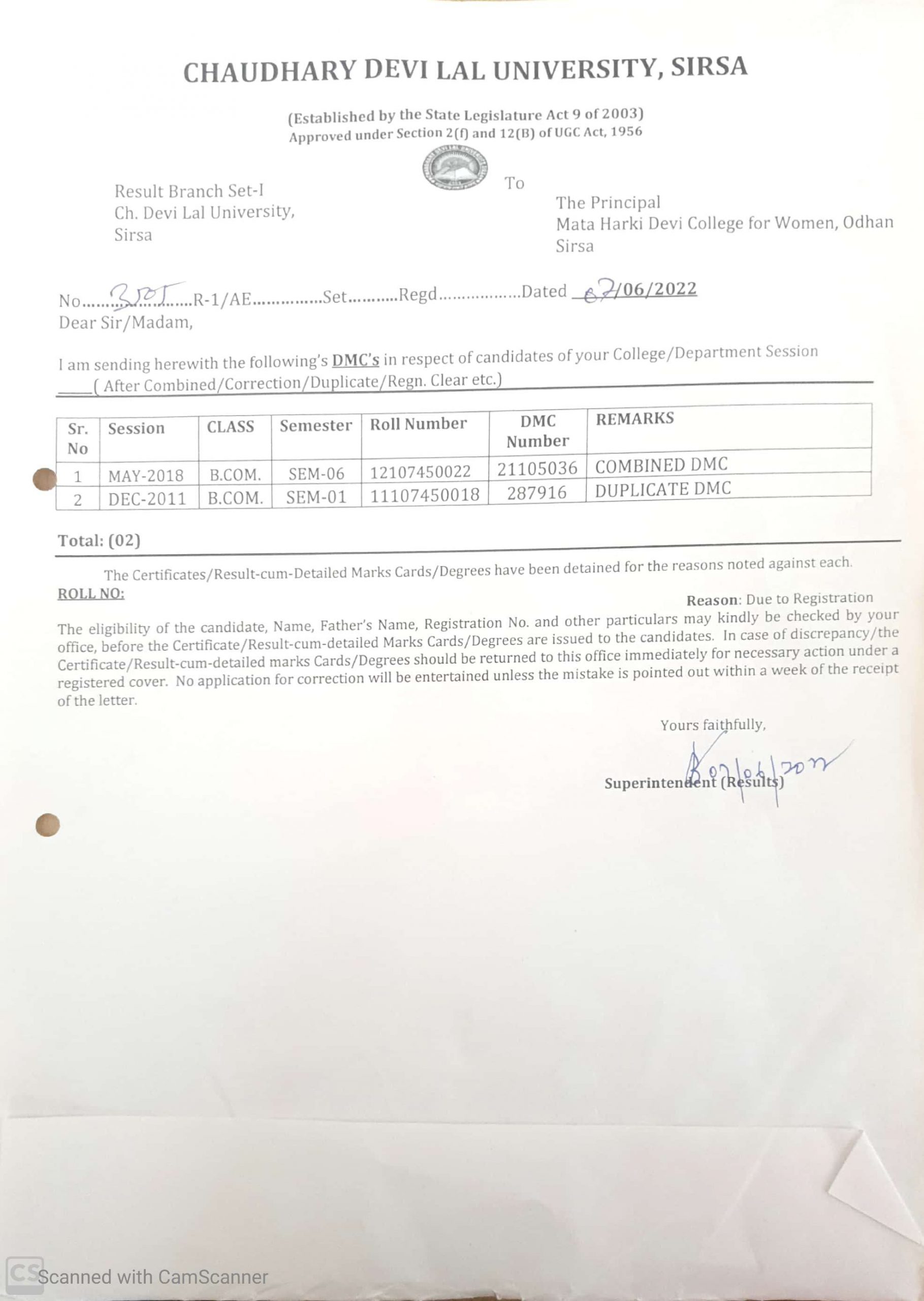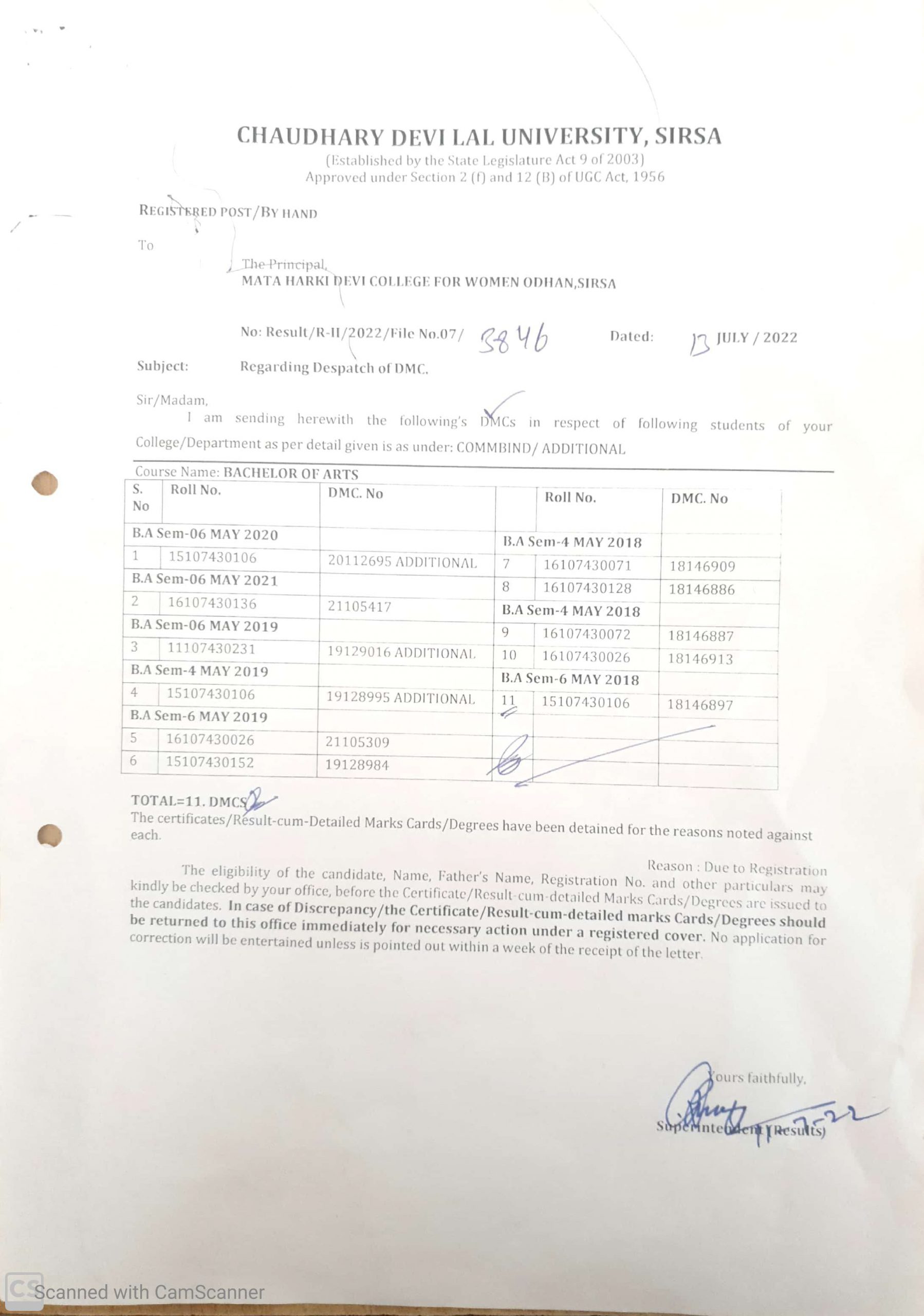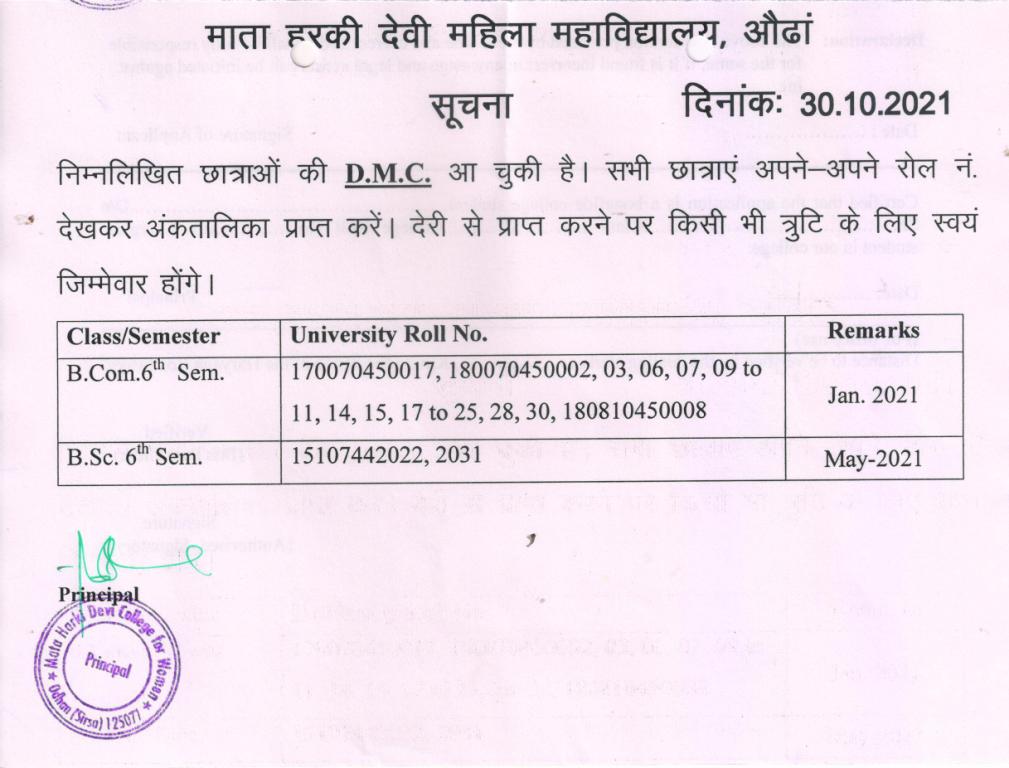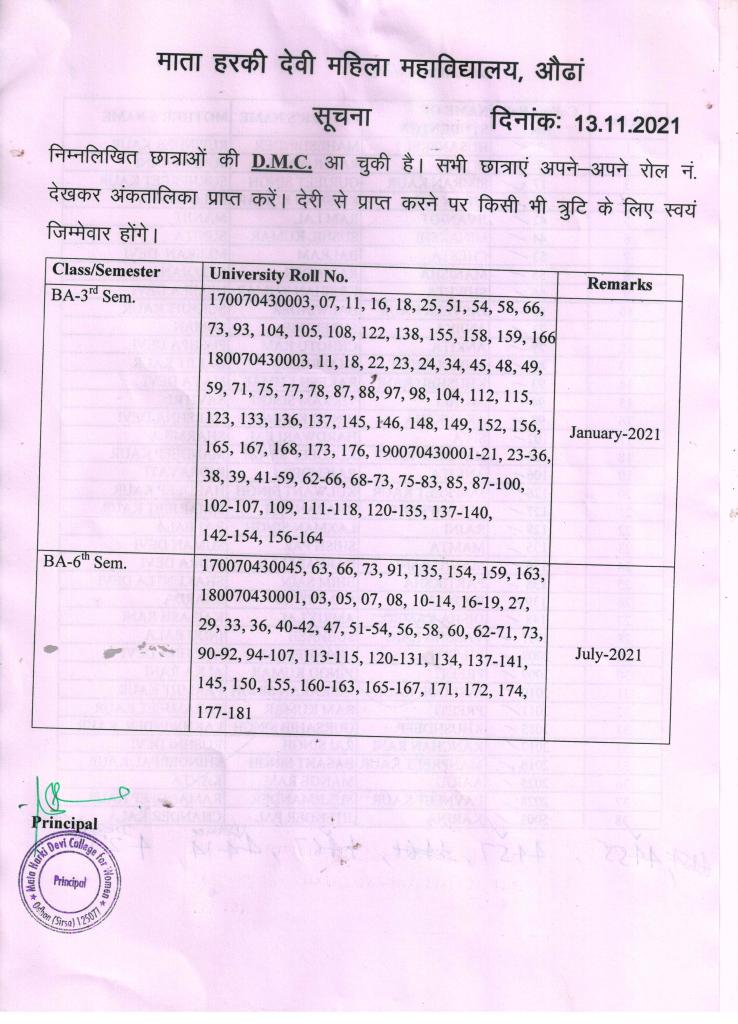 9. DMC OF B.A.3rd Sem., B.Com.2nd & 6th Sem. (Dec. 2019 & May-2020)