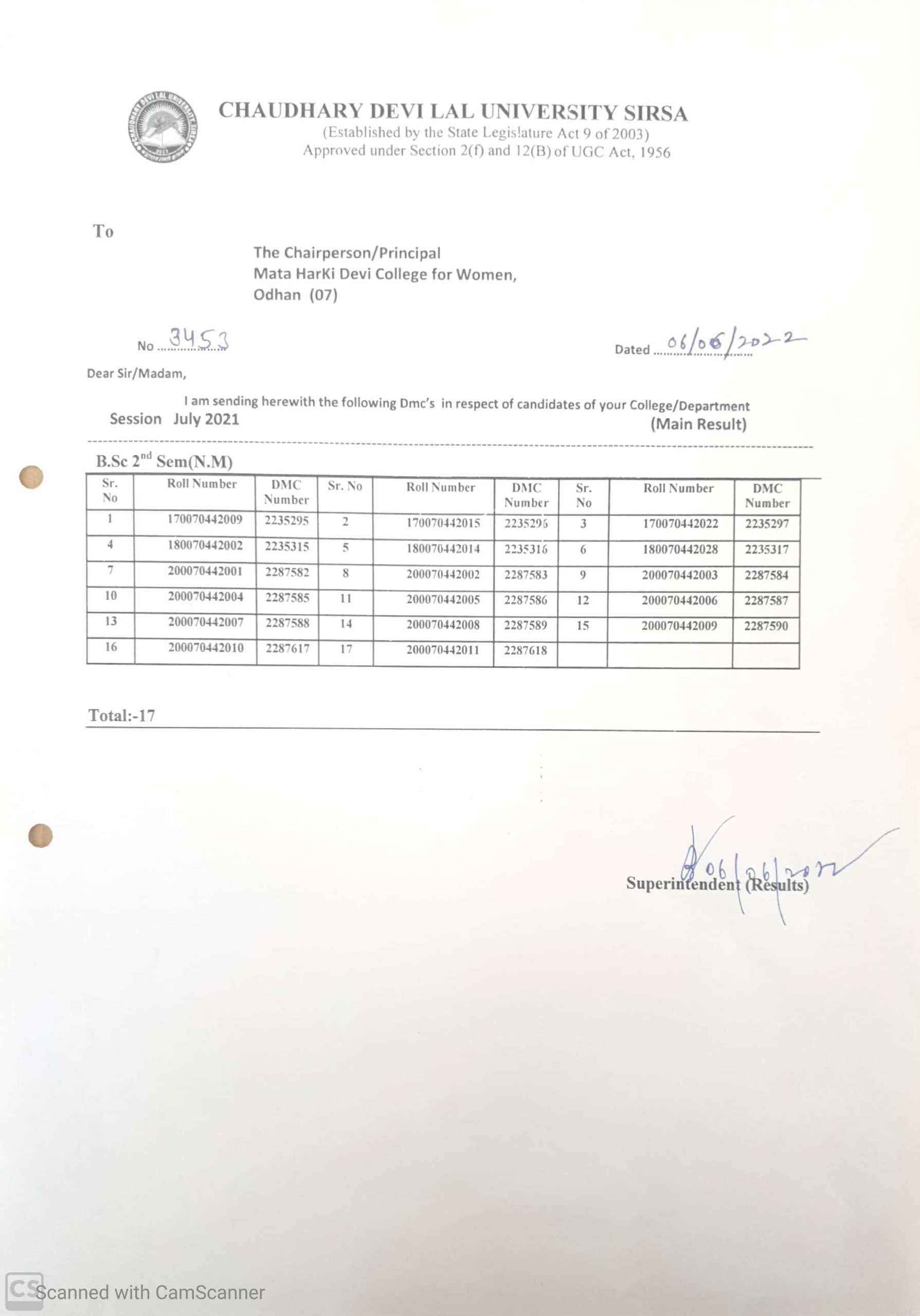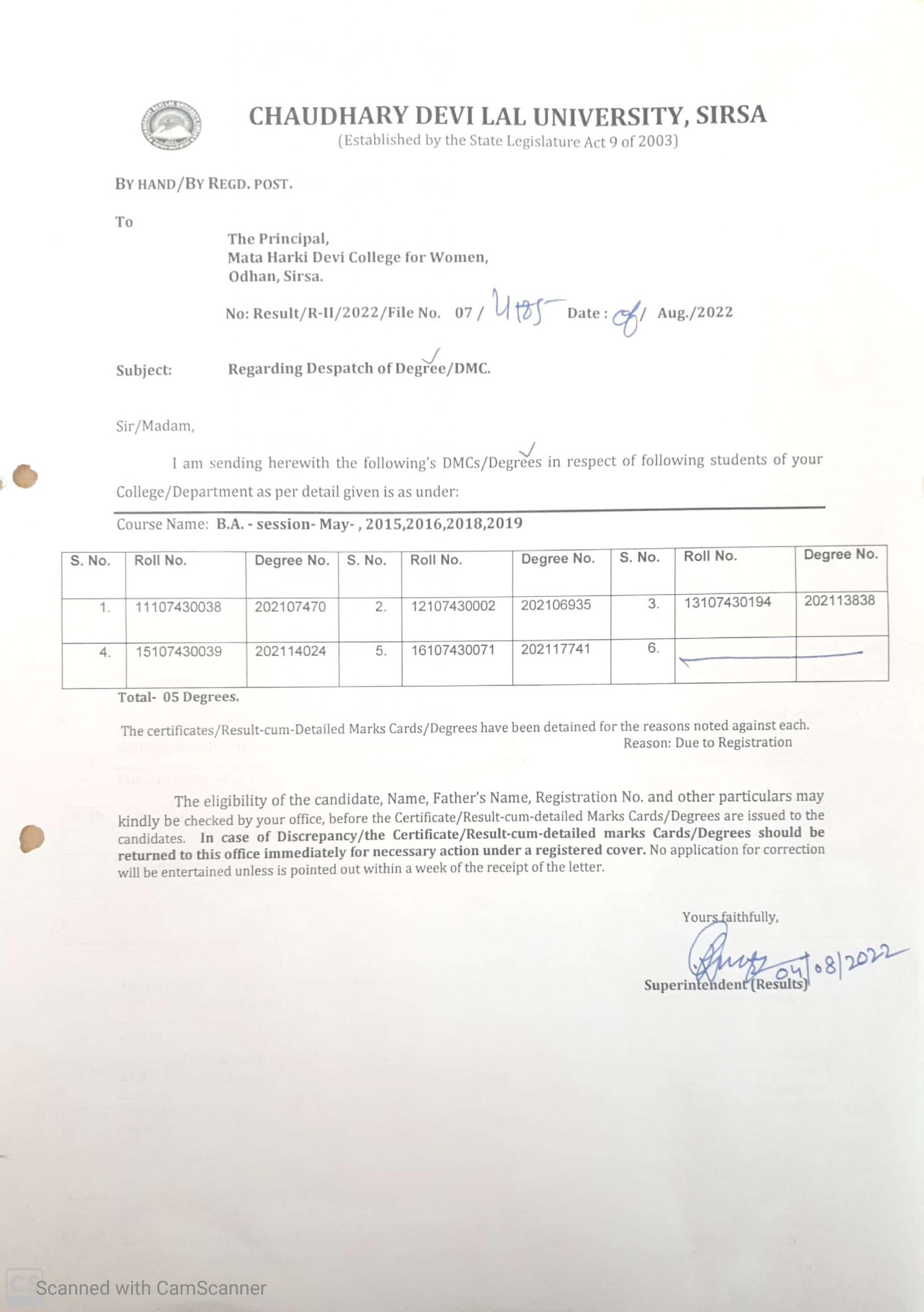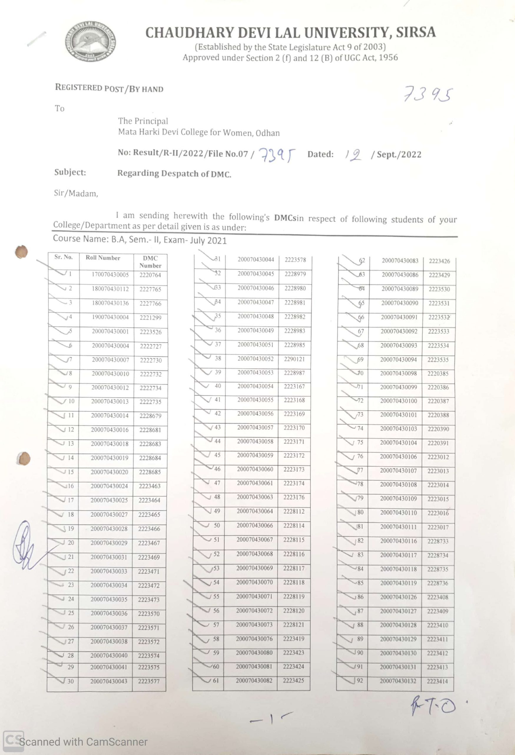 9. DMC OF B.A.3rd Sem., B.Com.2nd & 6th Sem. (Dec. 2019 & May-2020)