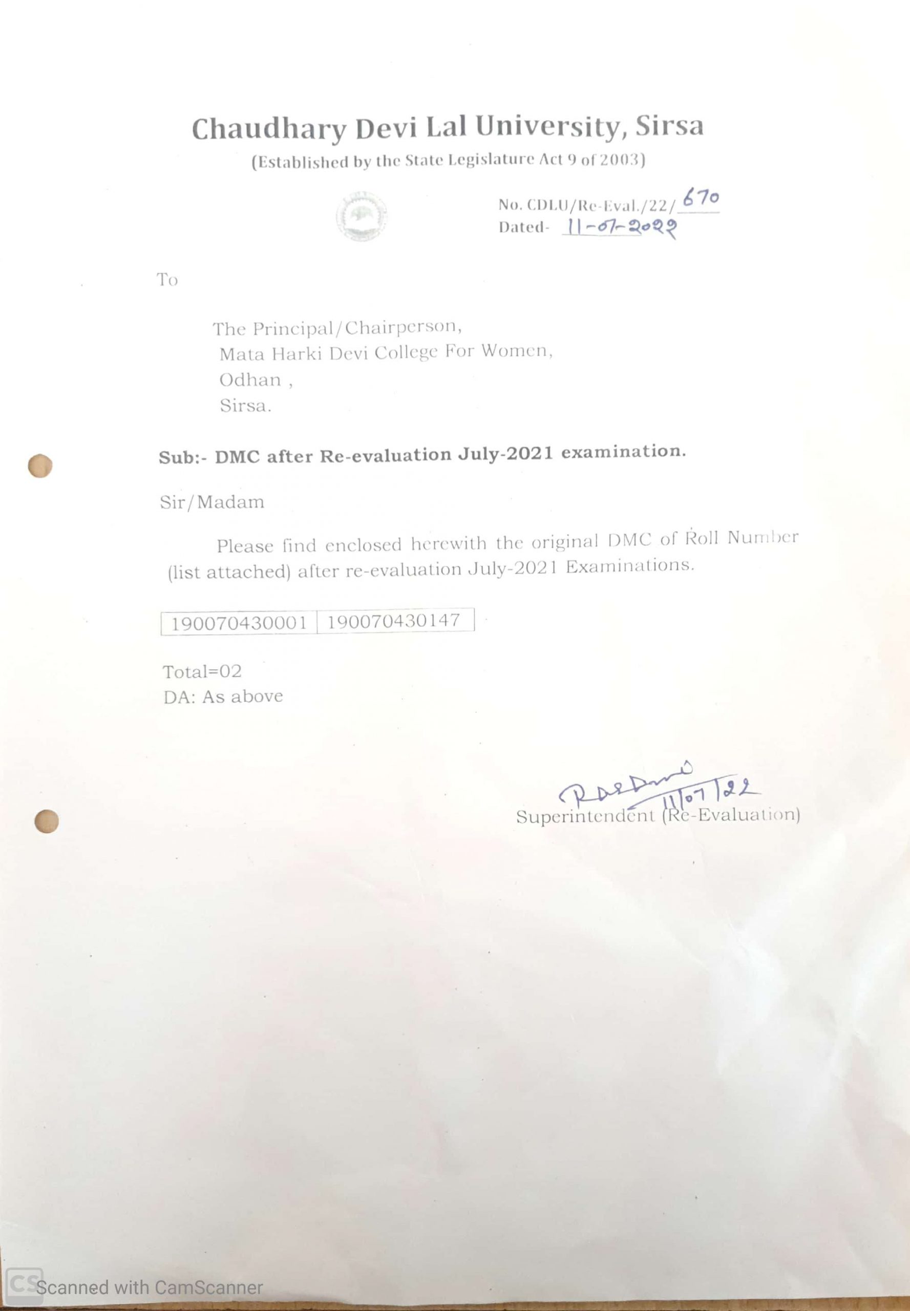 | 29. | DMC after Re-evaluation of Dec. 2019 Examinations. |