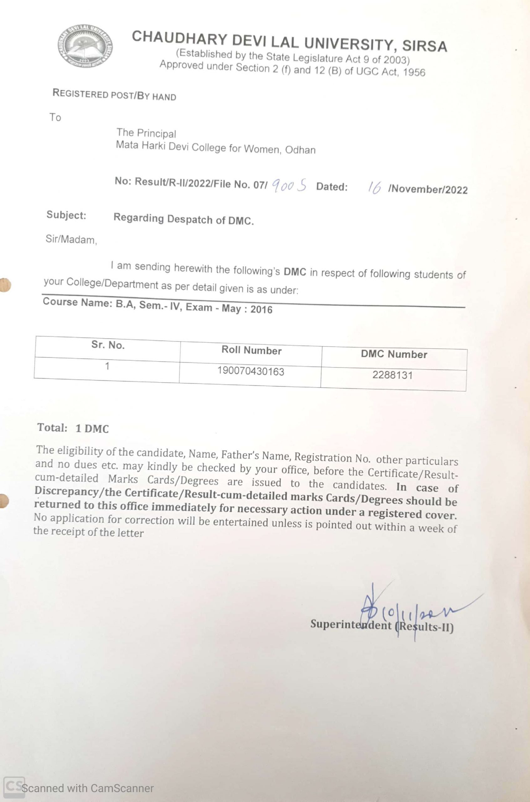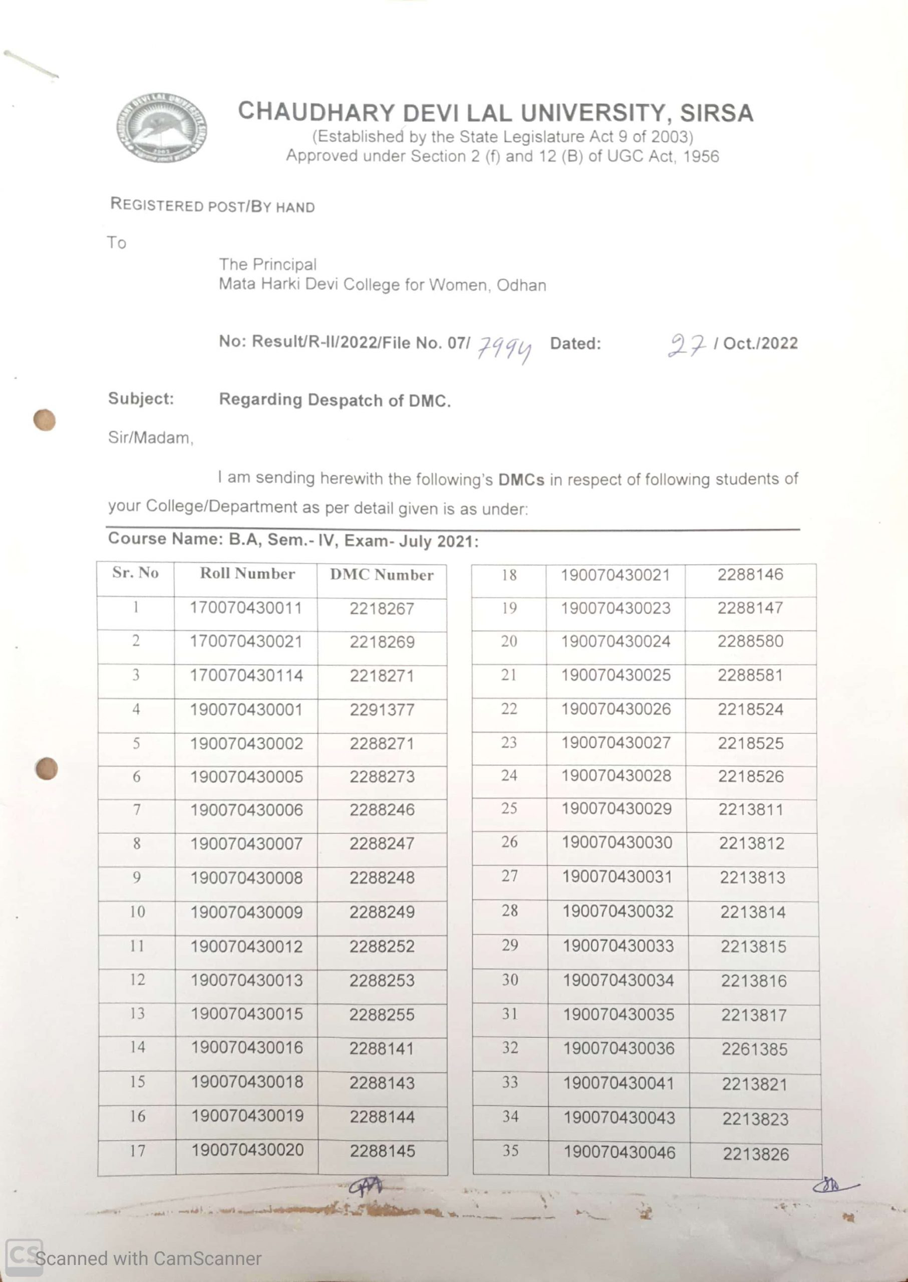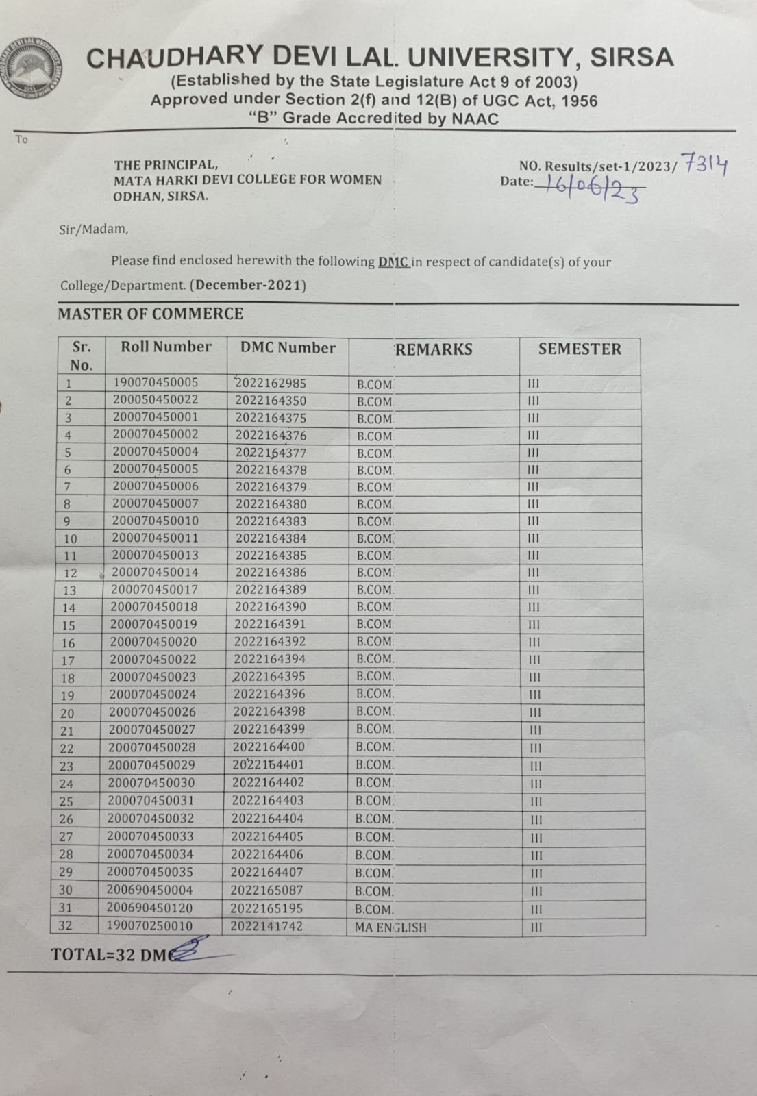 9. DMC OF B.A.3rd Sem., B.Com.2nd & 6th Sem. (Dec. 2019 & May-2020)