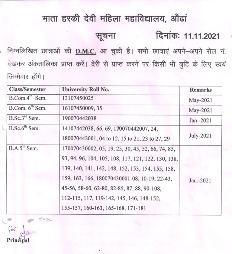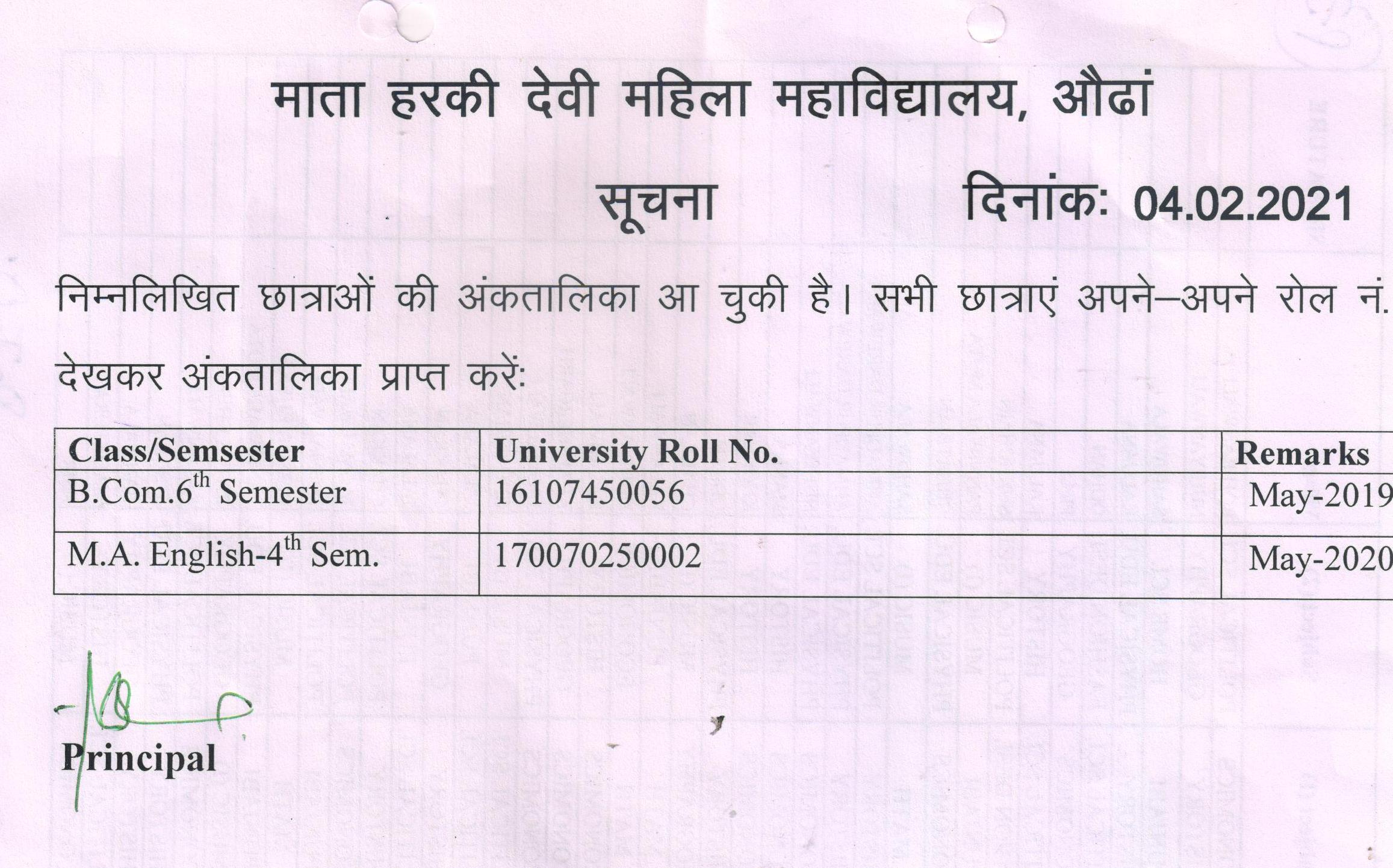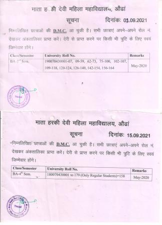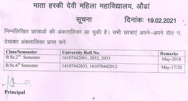 | B.A.6th Sem. | 170070430001 to 11, 13, 16 to 20, 22 to 26, 29 to 47, 49, 51 to 66, 69, 71, 73, 75, 76, 78, 79, 81, 82, 84 to 87, 89, 90, 92, 94, 96, 98 to 100, 102 to 104, 106 to 112, 114 to 122, 124 to 128, 130 to 133, 135 to 136, 138 to 142, 144, 145, 148 to 149, 152 to 156, 158 to 161, 163 to 167, 170 to 173 | May-2020 |