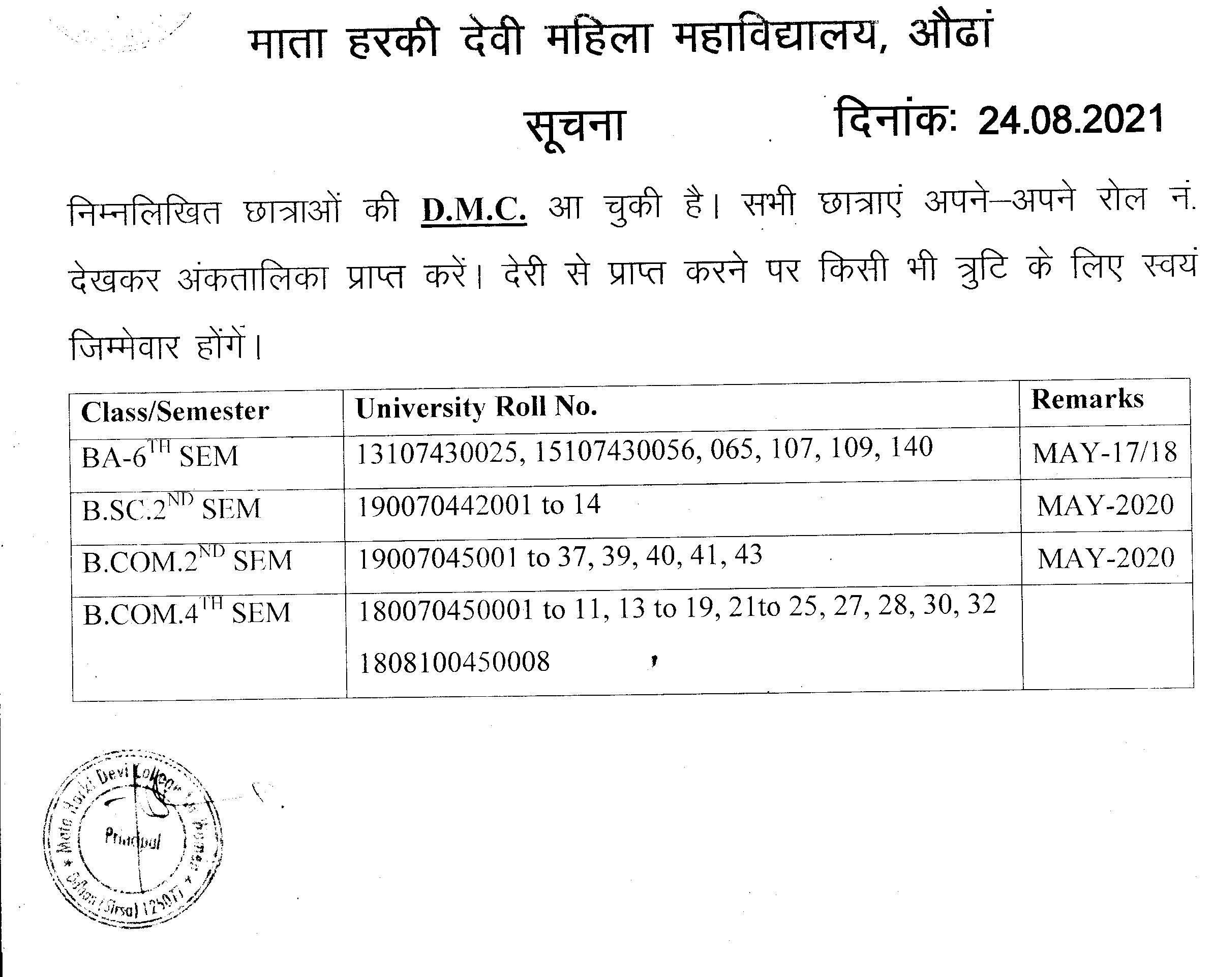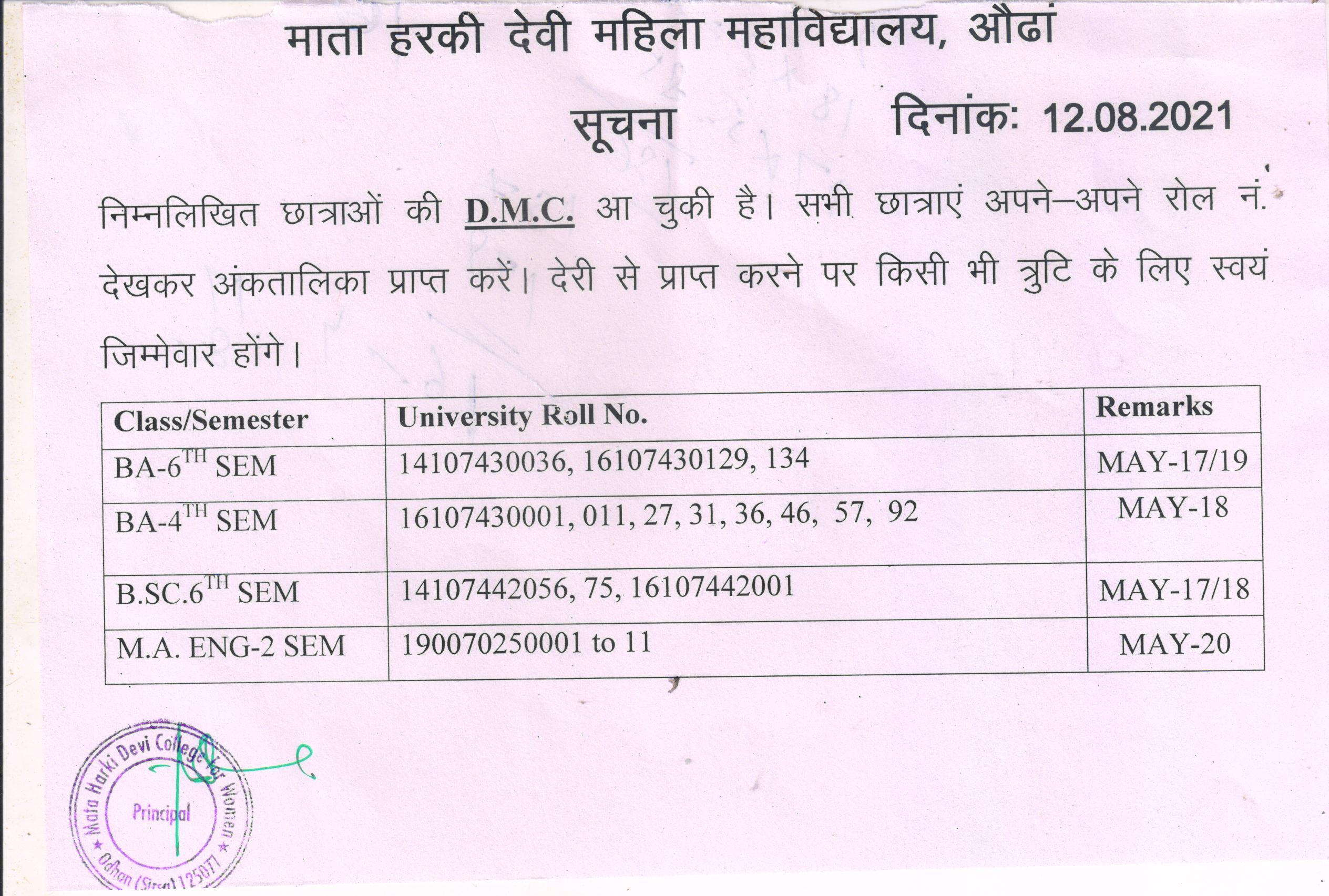 | 26. | DMC NOTICE (13-08-2021) | View Details |