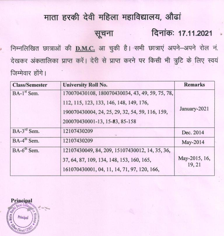 | 17. | DMC NOTICE (17.11.21) | View Details |
