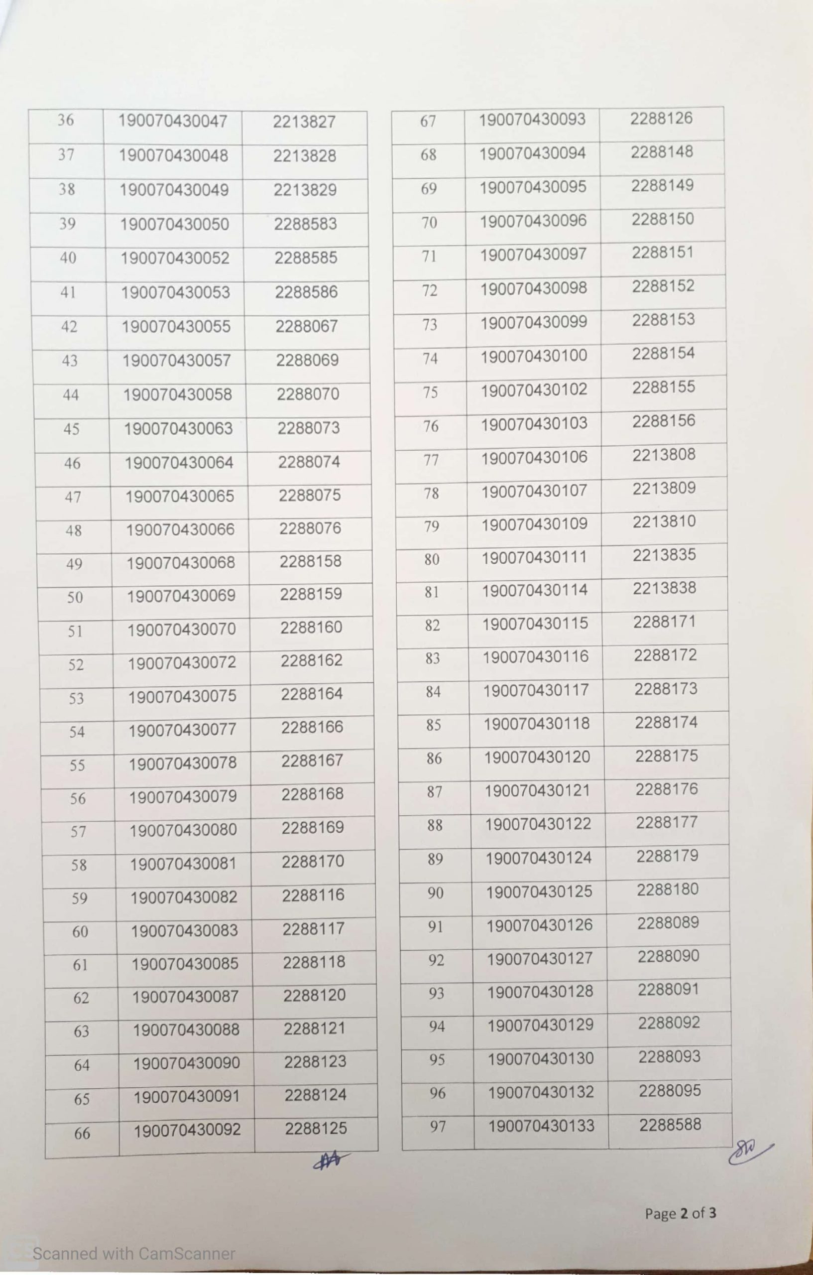 | B.COM.3RD SEM. | 170070450033, 41, 45 | DEC.-19 |