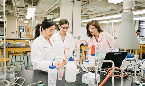 Chemistry labs in college are designed for hands-on experimentation and observation. They are equipped with specialized tools and equipment such as Bunsen burners, beakers, flasks, and test tubes. Students can perform experiments, analyze data, and draw conclusions to reinforce theoretical concepts learned in lectures. Safety measures and precautions are emphasized.